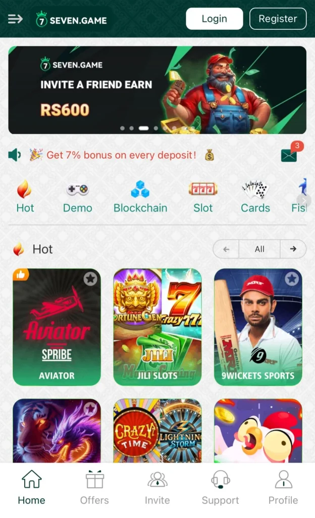 Seven Game’s interface is designed to be clean for users of all ages and revel in ranges. The homepage sincerely shows games, bonuses, and account options. No technical knowledge is required to understand any of the options, which gives confidence to even beginners and provides a smooth overall experience.